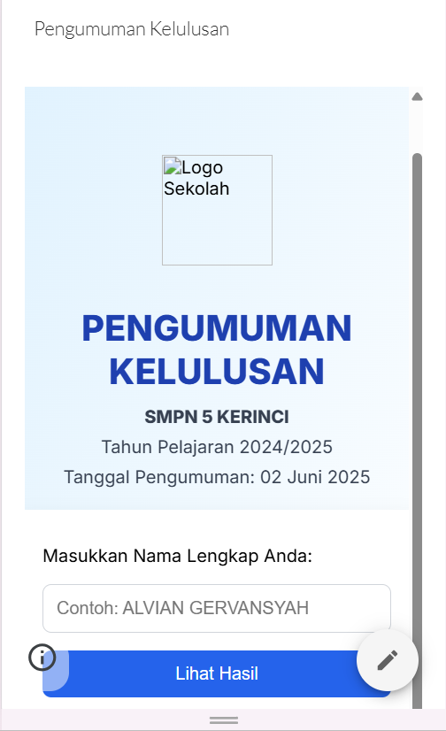 Aplikasi pengumuman kelulusan sederhana untuk platform mobile.